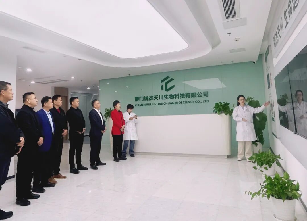 此次走访的是我会副会长企业——厦门锐杰天川生物科技有限公司,位于海沧区翁角西路2076号生物医药产业园B14号,锐杰天川自 2021 年 1 月成立,便以 2500 万元注册资金为基石,投身细胞产业赛道。作为厦门市 “双百计划” 支持企业与国家级高新技术企业,它从成立之初就肩负起创新使命。